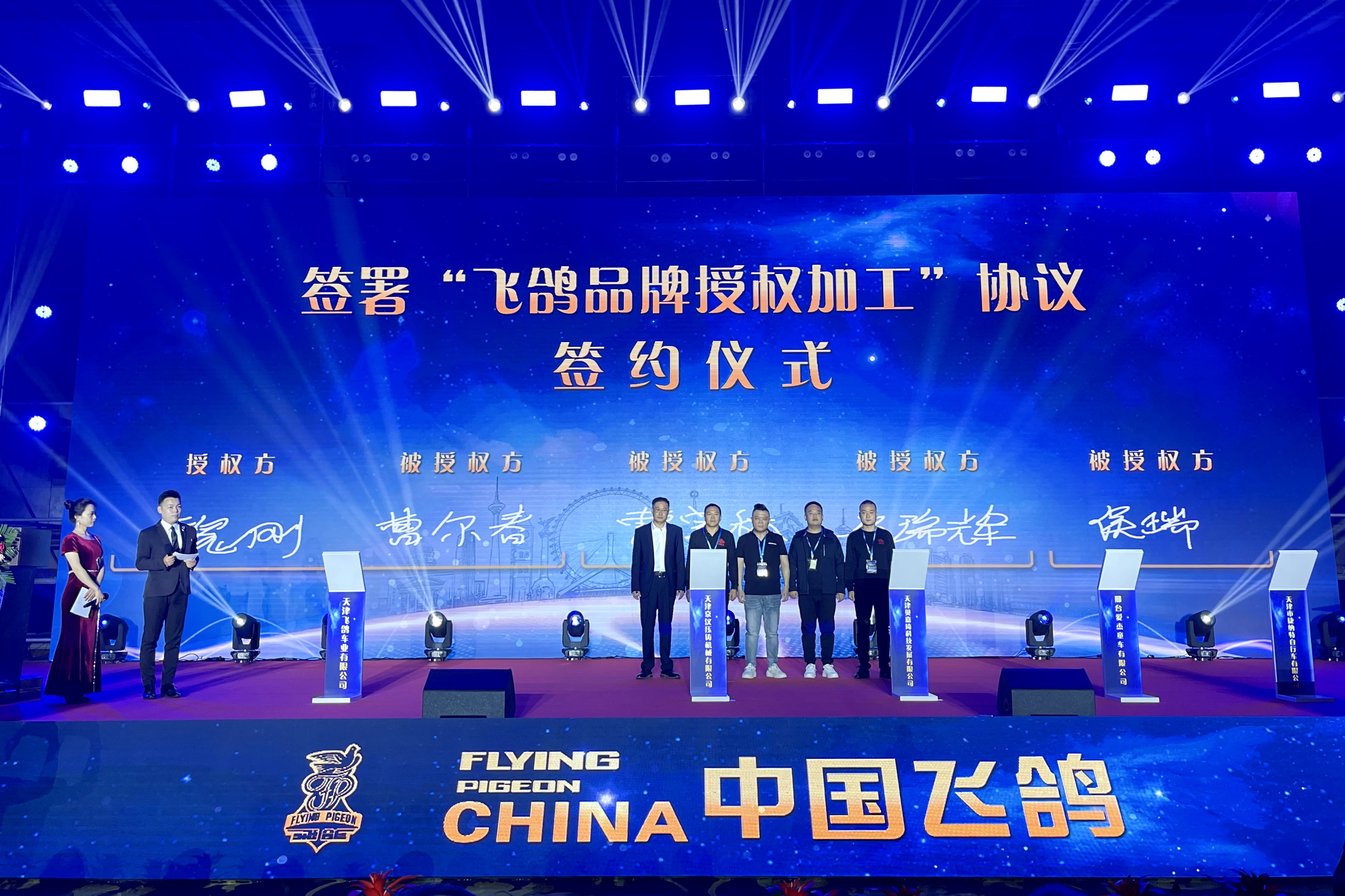 活动现场,飞鸽车业新公司与来自天津、上海、山东、河南等8家运营商、工厂商签订了合作协议,为电子商务运营商、线下经销商共计23家单位颁发了年度销售冠军、优秀合作伙伴、优秀经销商、特别贡献奖、新锐经销商等12个奖项。